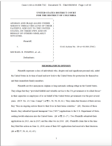 •  IRAP’s aid was crucial in securing a significant legal victory in a lawsuit against the US government over egregious delays in the VISA processing of SIV applicants. The court ordered the US government to expeditiously adjudicate the applications that have been pending for over nine months, an issue that would not have been addressed if not for advocates like IRAP and yourselves who continue to bring attention and support to the issue. To read the full press release of the case click here.