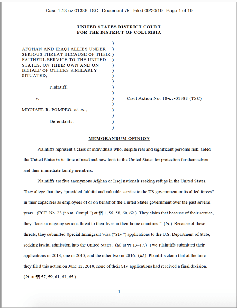 Screen Shot 2019-10-02 at 11.12.22 PM Published October 3, 2019 at 1000 × 1296 in Screen Shot 2019-10-02 at 11.12.22 PM Official court order issued by the US District Court of Colombia siding with the Plaintiffs supported by IRAP. To read the full order click on the document or to read the press release click on the link.